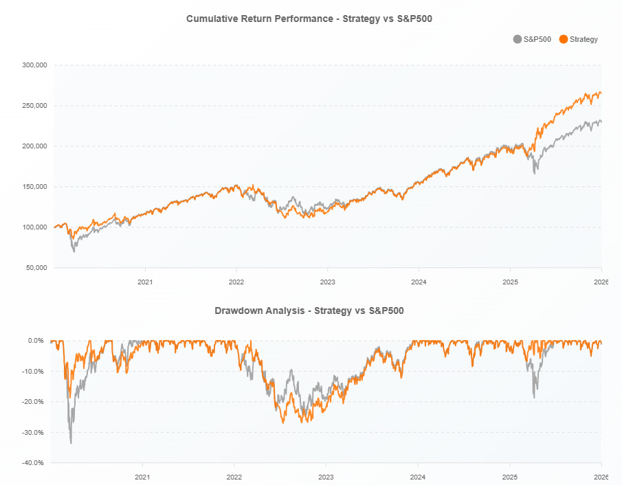 ā Sharpe Ratio (risk-based return) is +47.7% better than S&P500