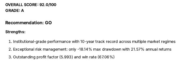 AI reviewed our strategy and gave Grade A with 92/100 score: